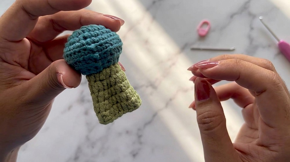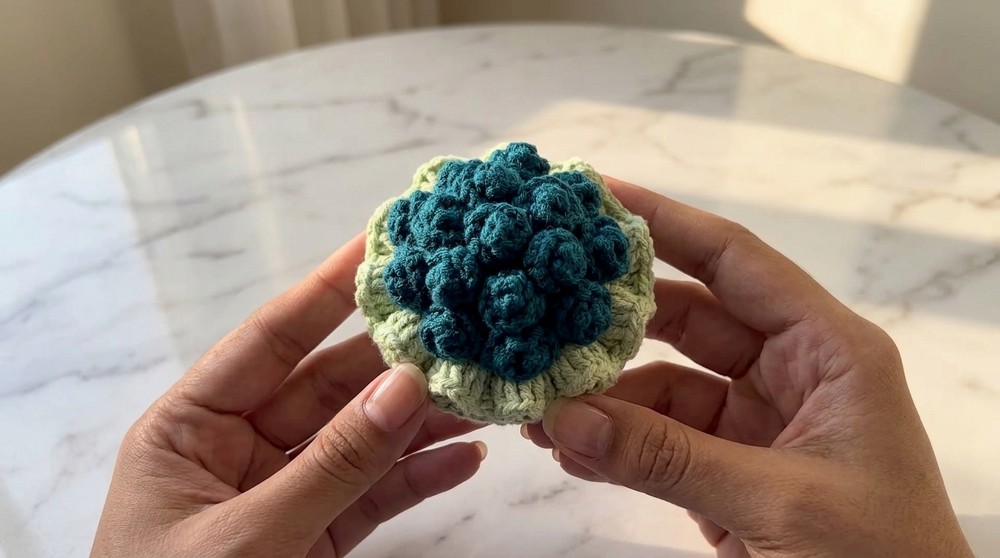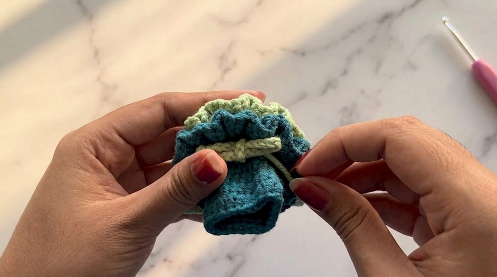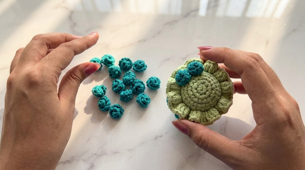 - Hide leftover yarn tails with a needle and adjust for smooth finishing.