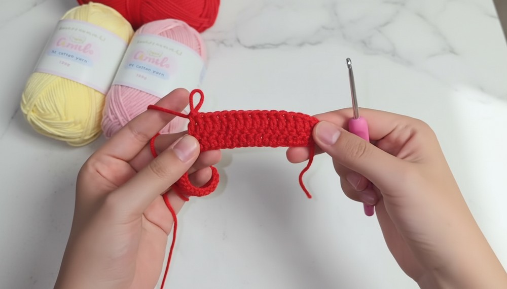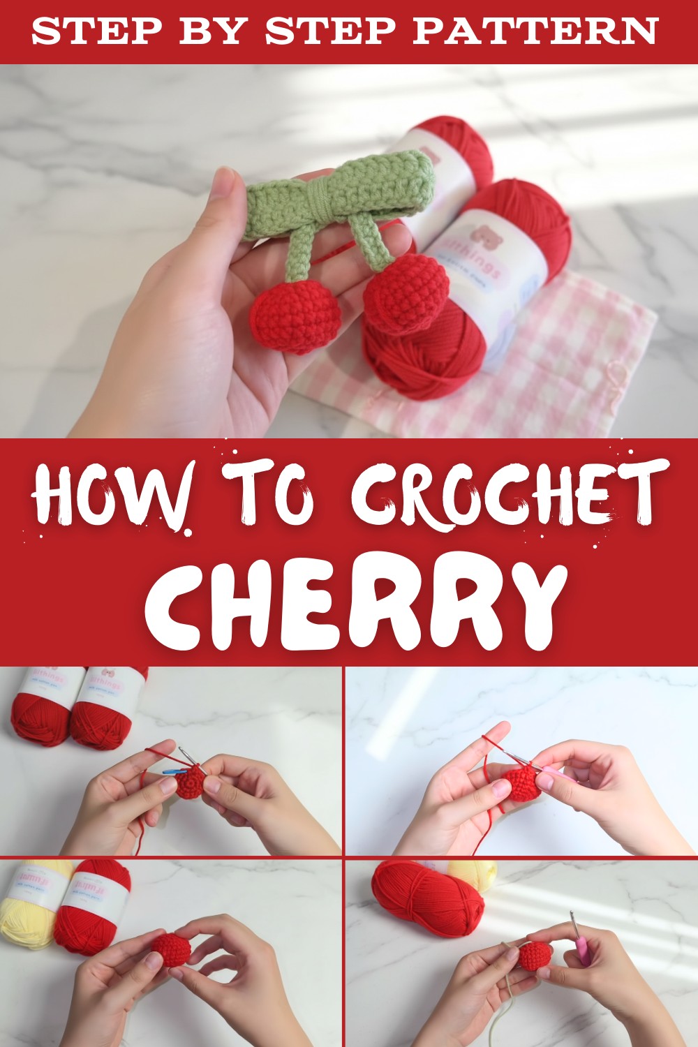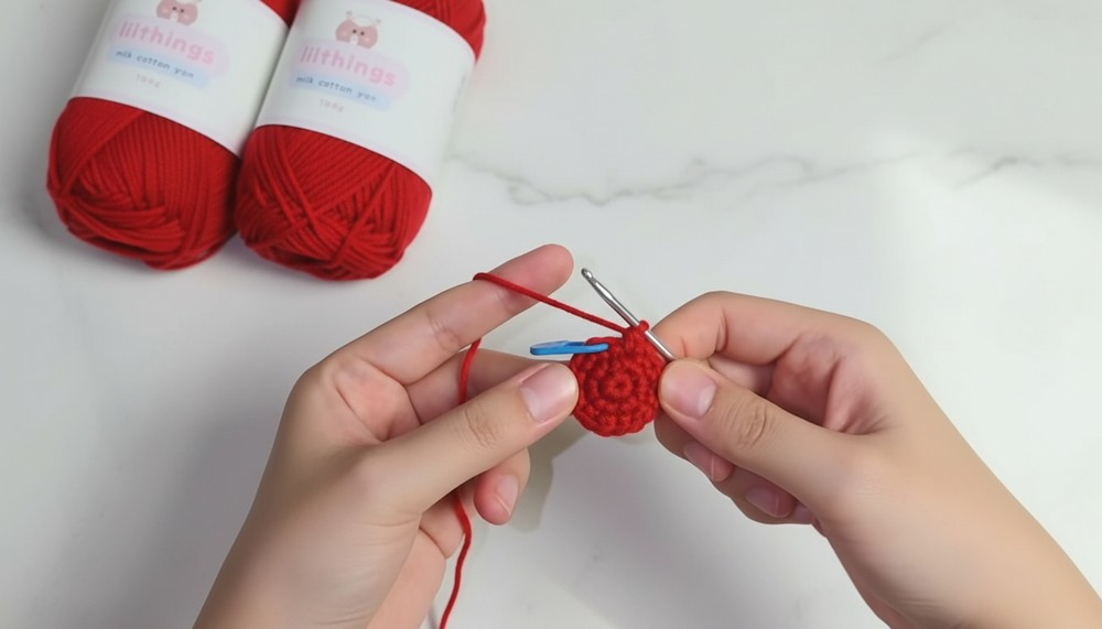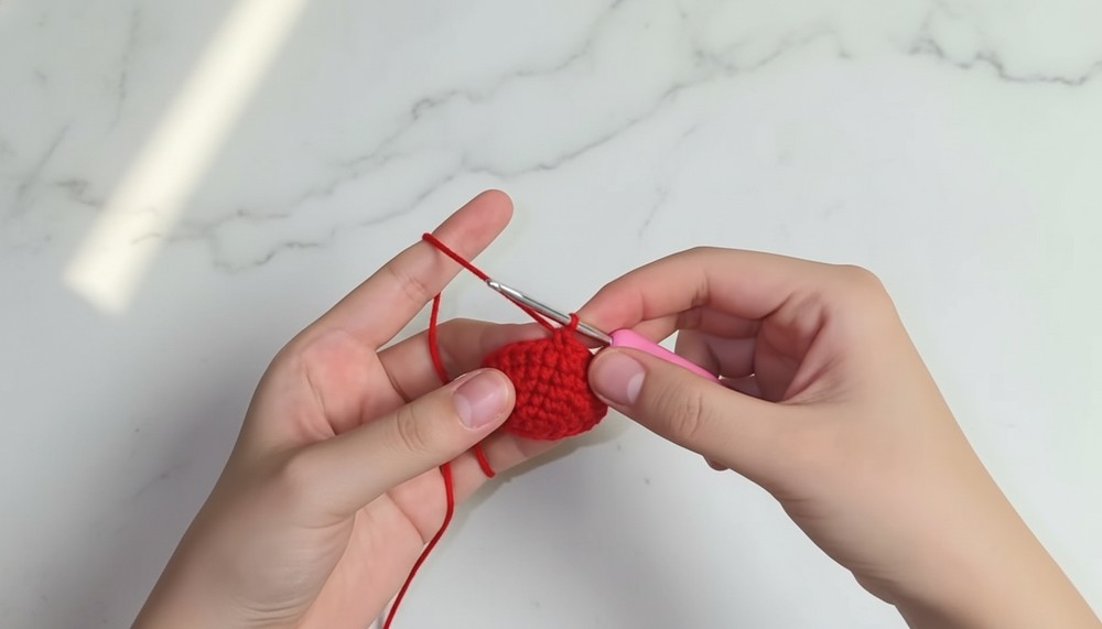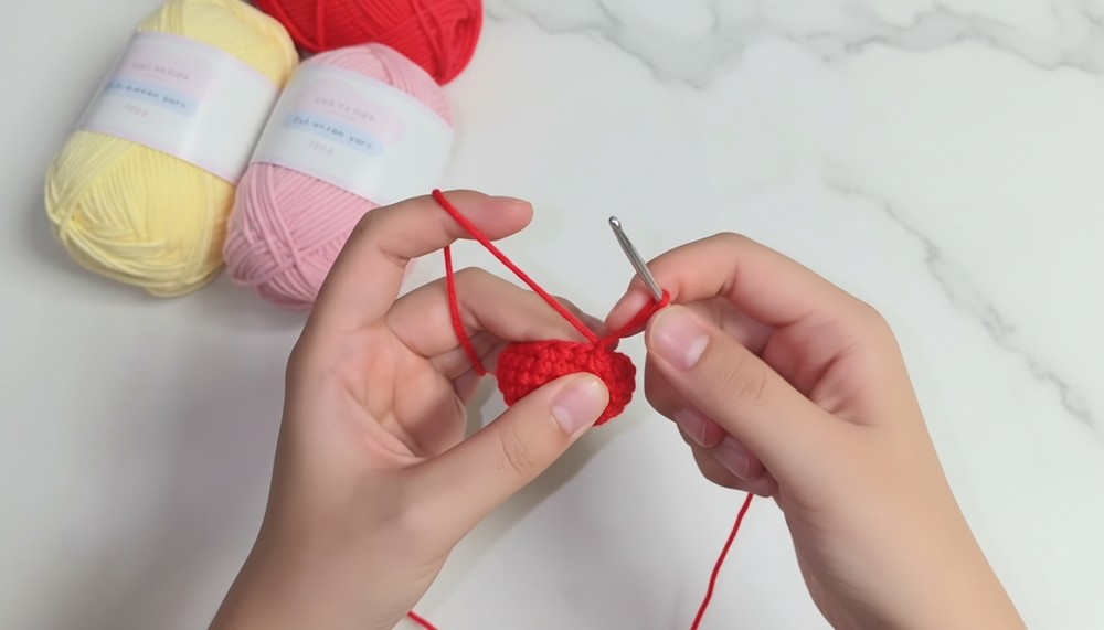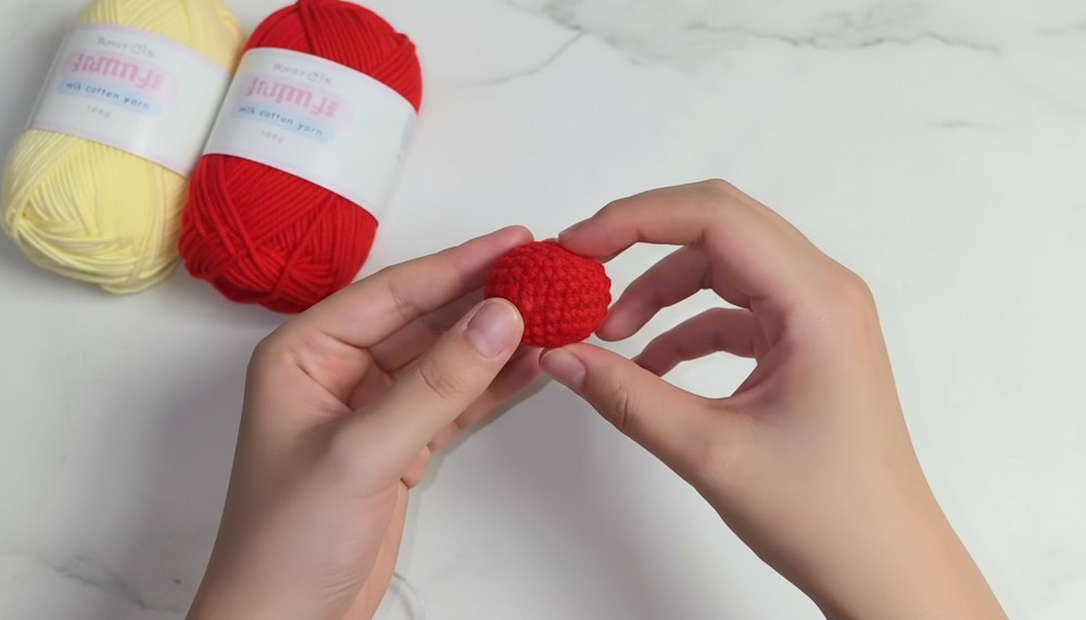 - Finish by securing the last SC with a knot. Trim and hide yarn tails inside the cherry.