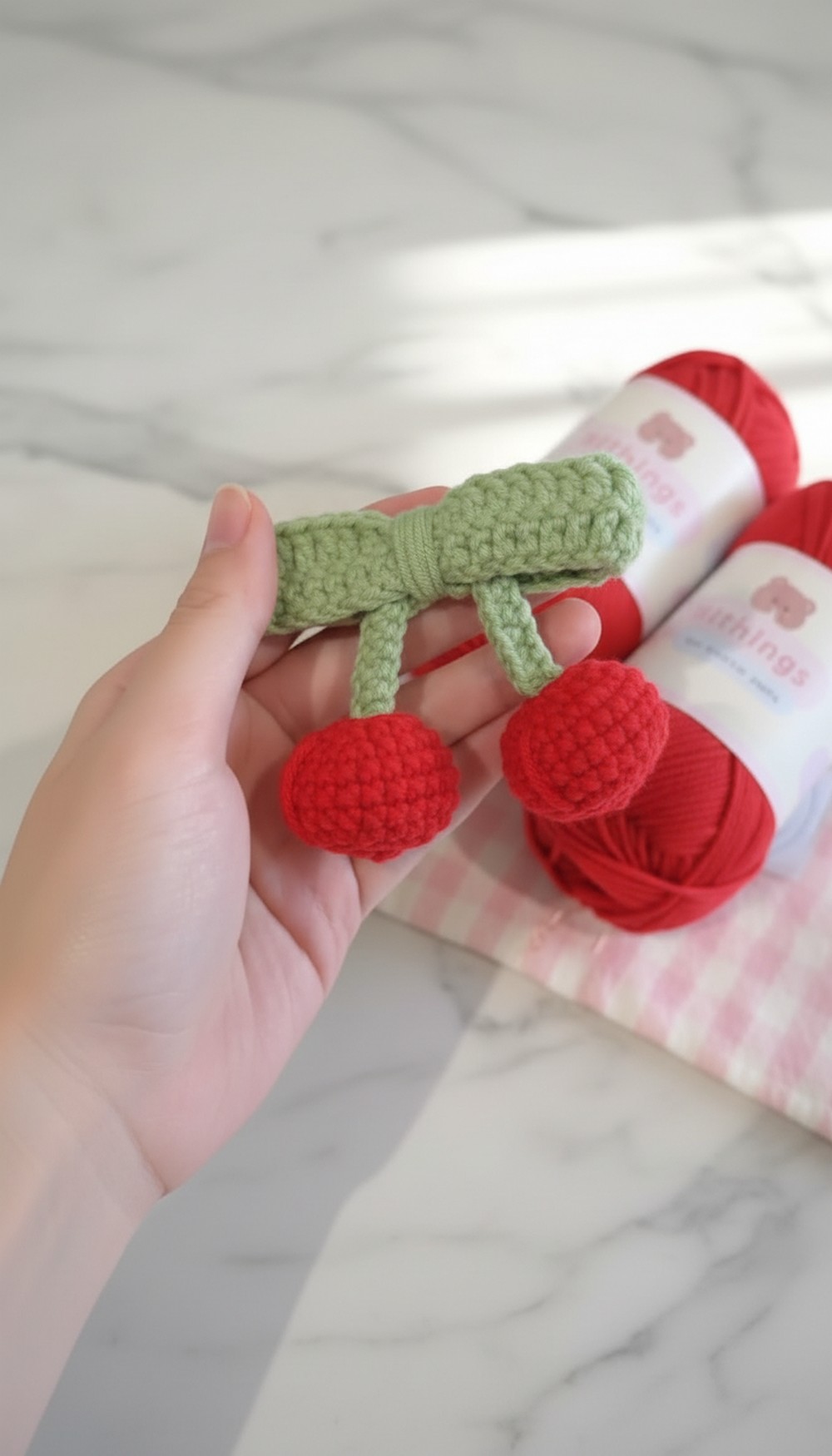 - Use glittery or metallic yarn for the cherries to make them sparkle.