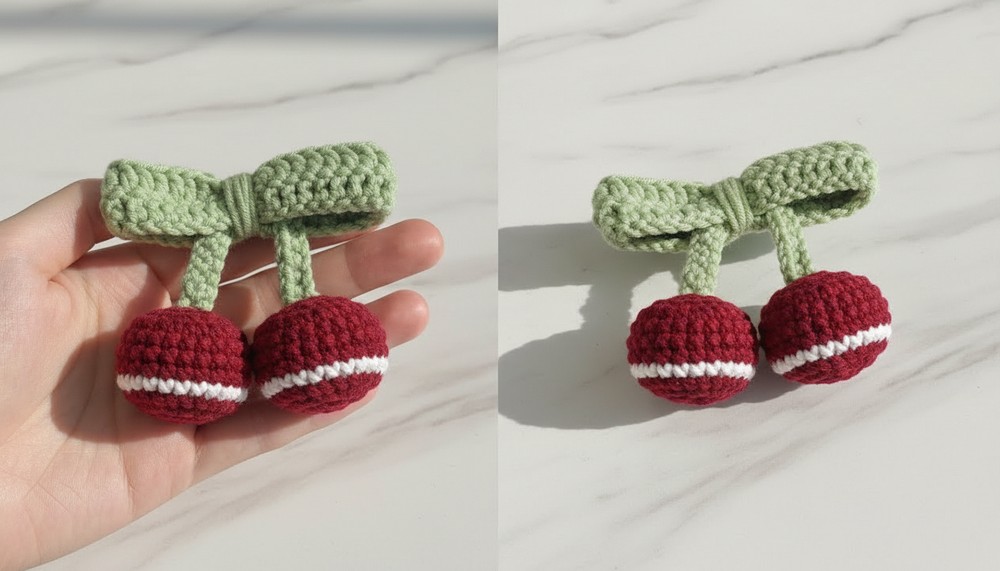 These cherries are so soft and colorful that they’ll bring life to anything you decorate keychains, bags, or gifts. The pattern is super easy to follow, and the finished cherries look so cheerful that they’ll make everyone smile.