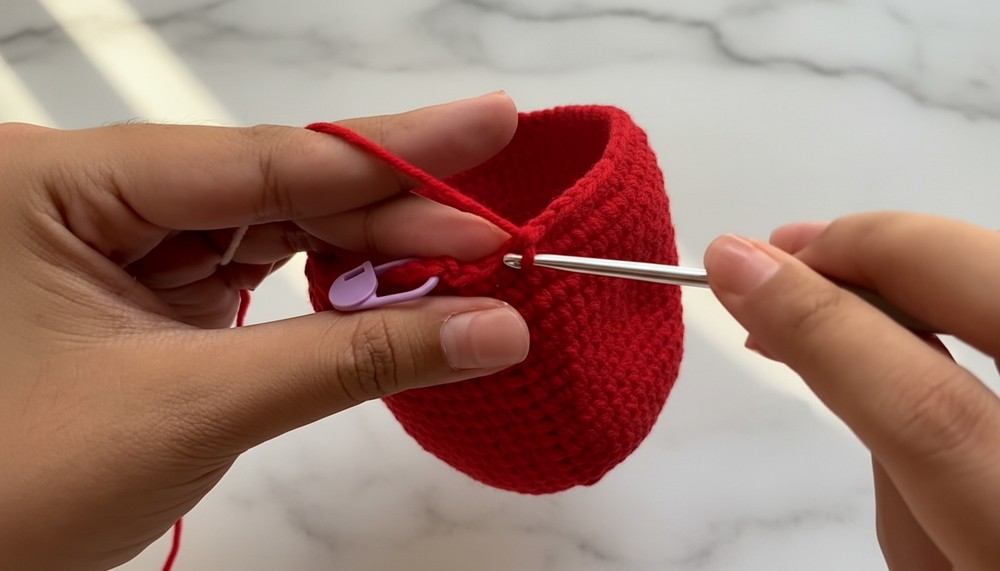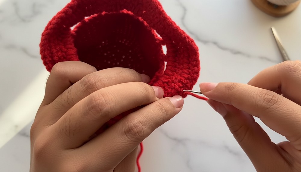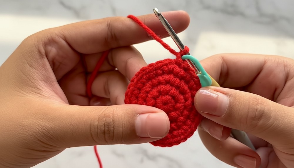 - Round 3: (1 sc, 1 inc) x 8. Join with sl st and ch 1. (24 stitches)