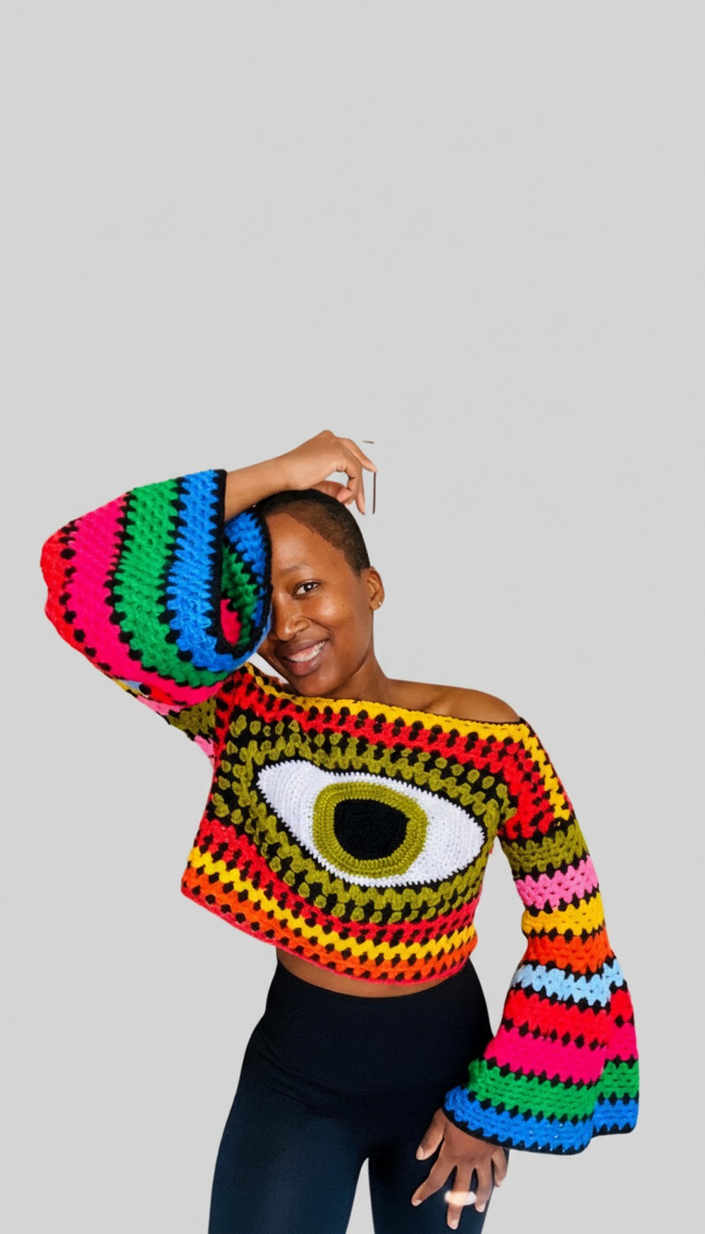 Your crochet eye granny square top is now finished! It’s vibrant, stylish, and uniquely handmade. Perfect for pairing with jeans, skirts, or shorts, this top combines bold patterns with elegant construction.