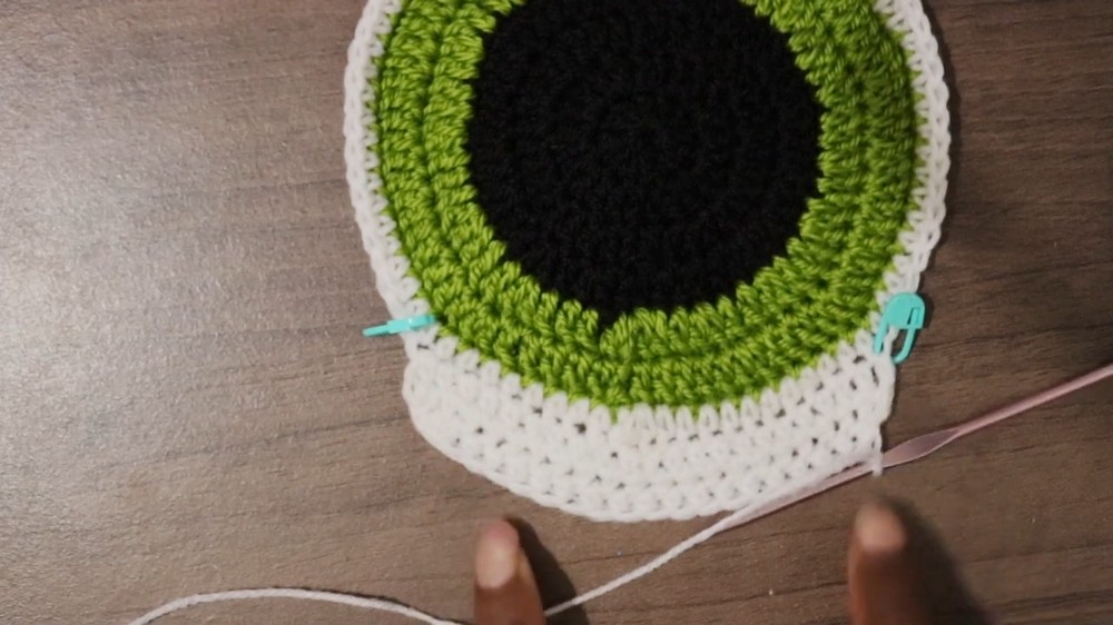 - Switch to white yarn for the outer part of the eye.