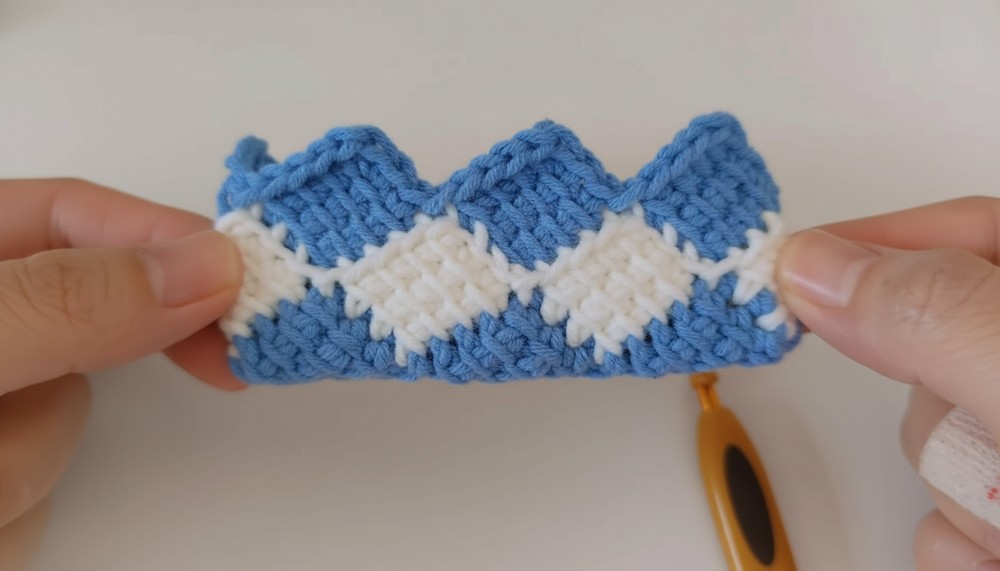 Follow these steps to crochet half diamond blocks along the top of the last row:
