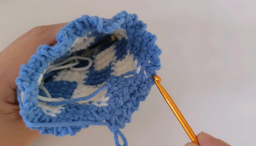 Your Tunisian drawstring pouch is now complete! Add decorative charms, tags, or embellishments to make it unique. This elegant pouch is suitable for small storage, memorable gifting, or showcasing your crochet skills.