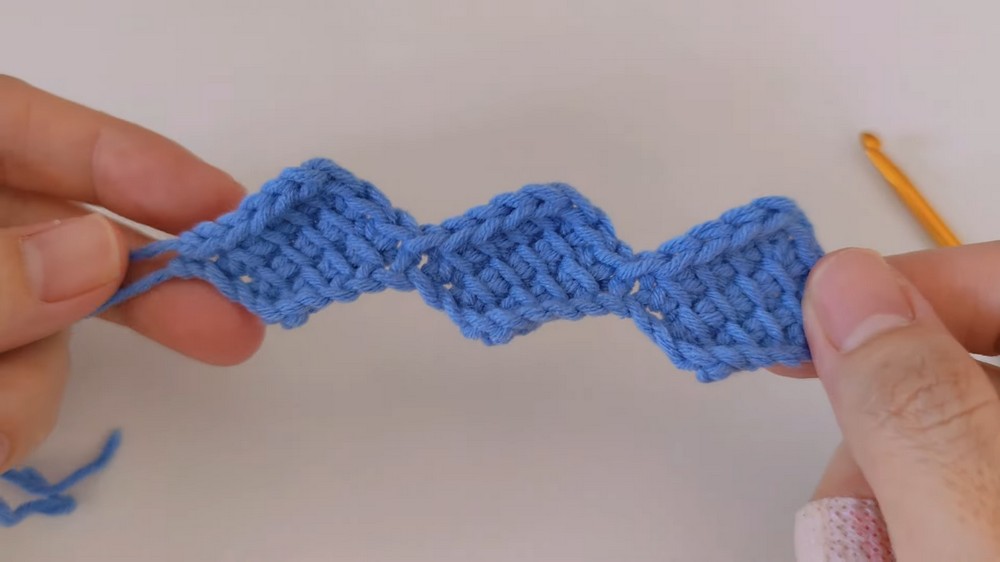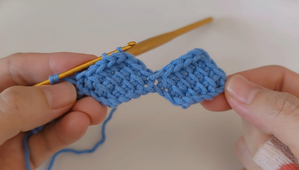 Continue adding diamond blocks upward in rows until the pouch reaches the desired height. Each block is worked similarly to the base.