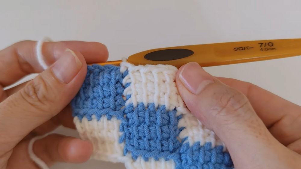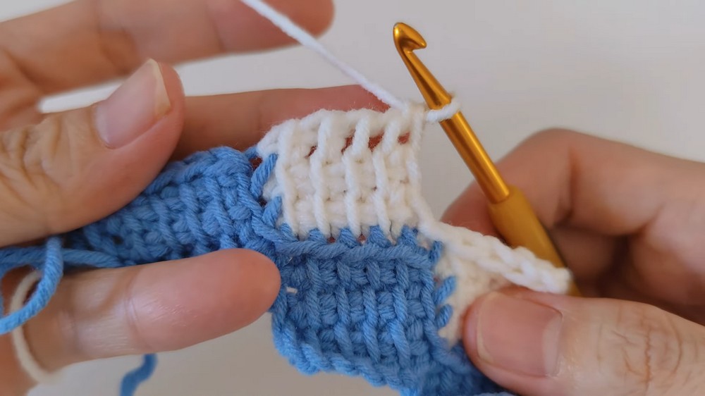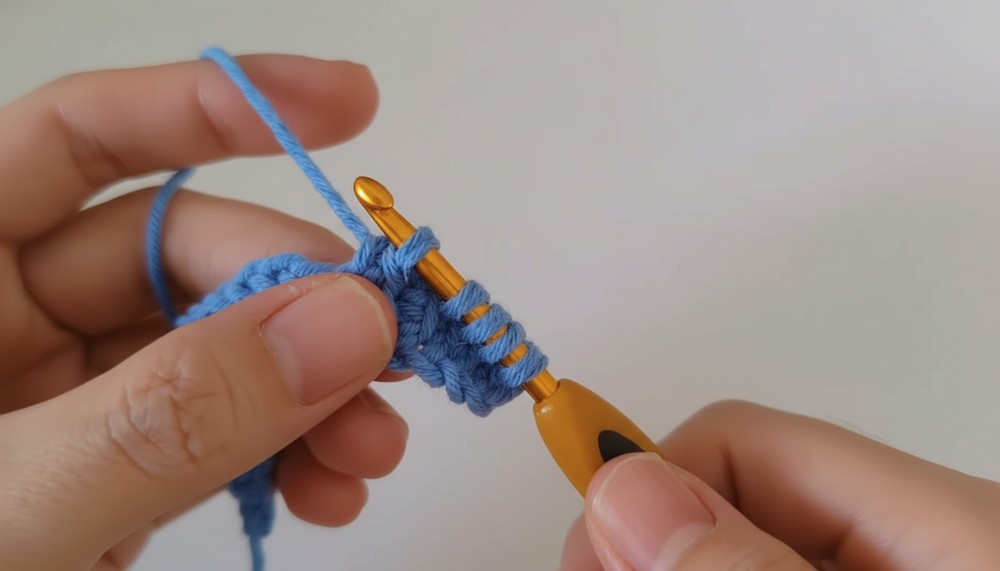 - Insert the hook into the next stitch and pull up a loop.