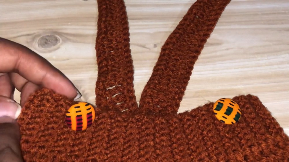 - Using your darning needle, sew the buttons to the front of the skirt, aligning them based on the strap holes.