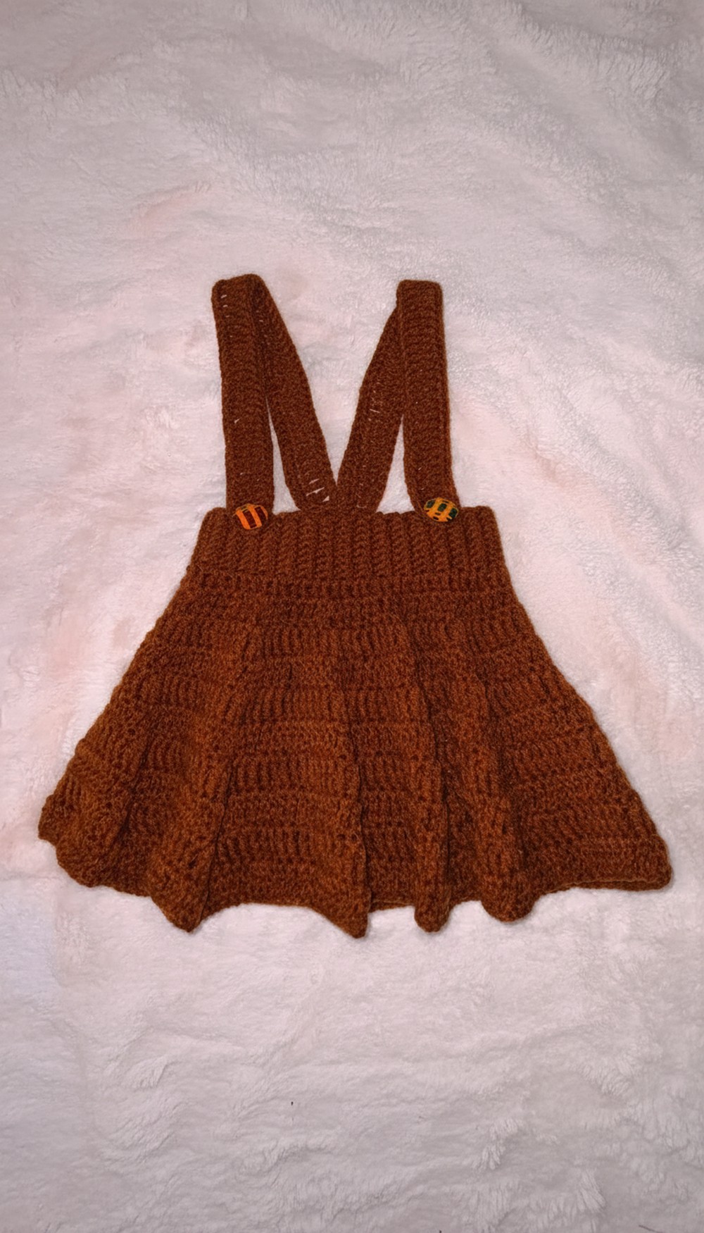 Dress your baby in a unique and stylish crochet suspender skirt, offering soft comfort, adjustable straps, and an adorable look for babies aged 0-3 months.
