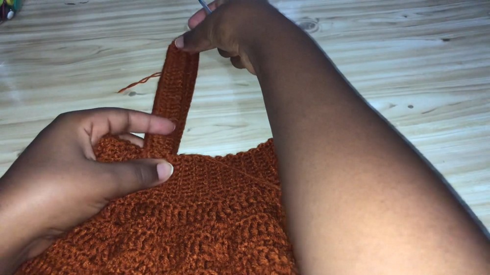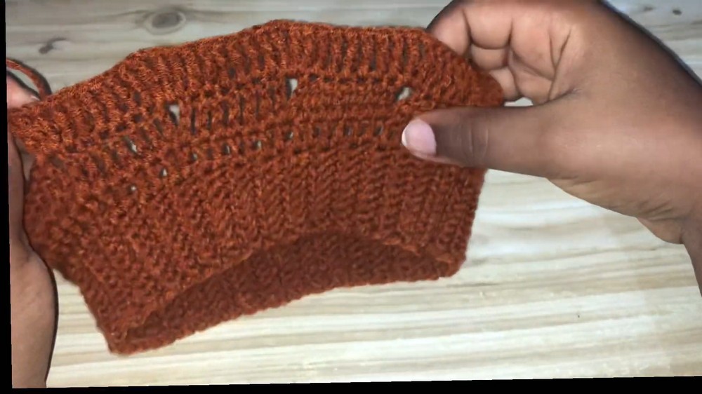 - Ch 3 (counts as dc), make 1 dc into each row around the waistband until you’ve worked all the way around.