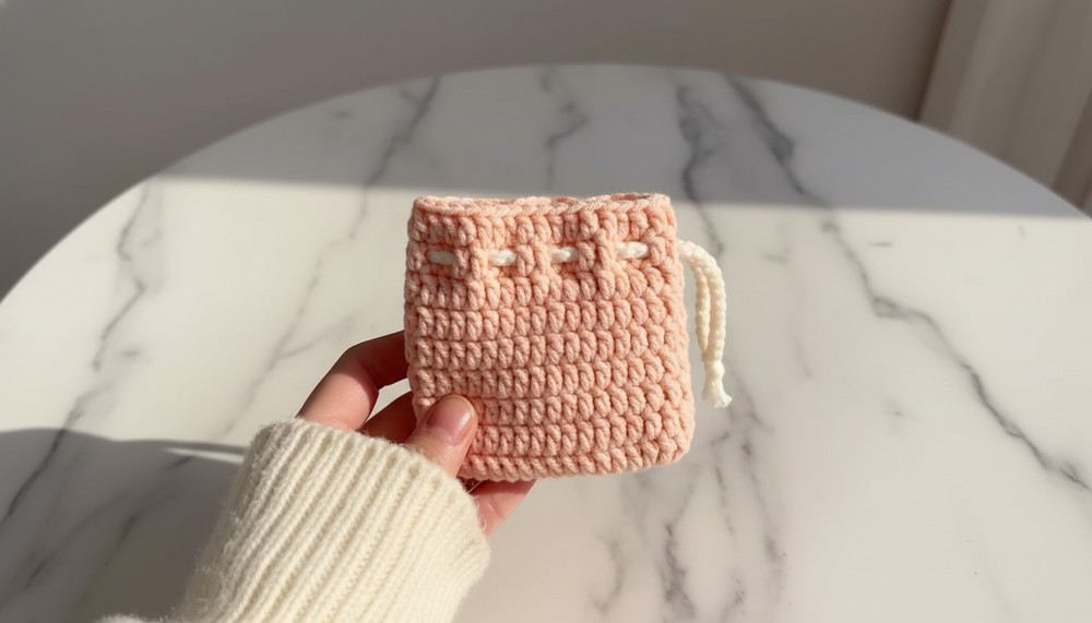 This versatile pouch is not just about practicality; the handmade aesthetics make it a thoughtful gift or a chic addition to your own everyday routine. Style it by choosing colors or yarn textures that match your personality, making it blend effortlessly with your decor or wardrobe. Whether slipping it into a handbag or using it as a decorative piece, this pouch delivers a touch of elegance and purpose. Plus, it’s eco-friendly, reusable, and fun to make, letting your creativity shine in every stitch.