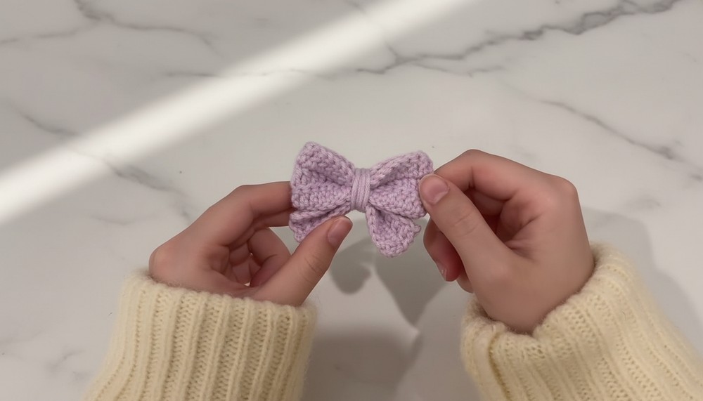 Congratulations on completing your no-tie crochet bow! This versatile pattern can be used for hair accessories, gift packaging, or home decor. The simple construction ensures a neat, polished finish, while the textured rows add depth.