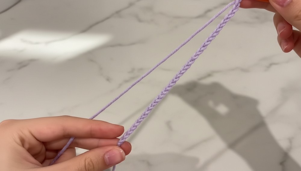 - Yarn over (yo), pull through the loop on your hook. Repeat 32 times.
