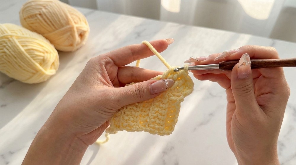 - Gauge Testing: Before starting, crochet a few rows with the milk cotton yarn and plush yarn to measure their ratio. This ensures precision in proportional adjustments.