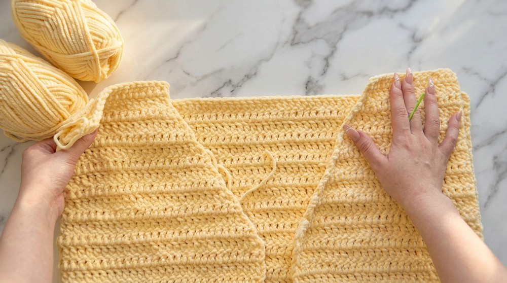 - Ch 2, DC across all stitches for a straight rectangular panel (same height as front panels).