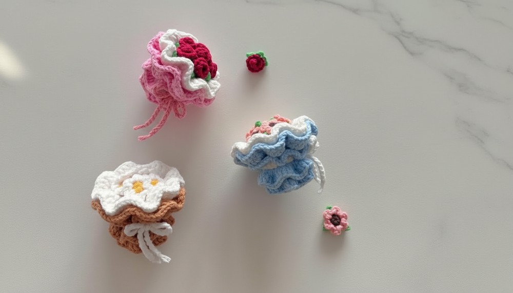 Congratulations on completing your mini bouquet! This design is versatile and perfect for a variety of occasions, such as weddings, gifts, or even home décor. The charming layered design, combined with the lovely flowers, creates a timeless and elegant look. Enjoy crocheting your mini bouquets, and be sure to share your creations with friends and loved ones.