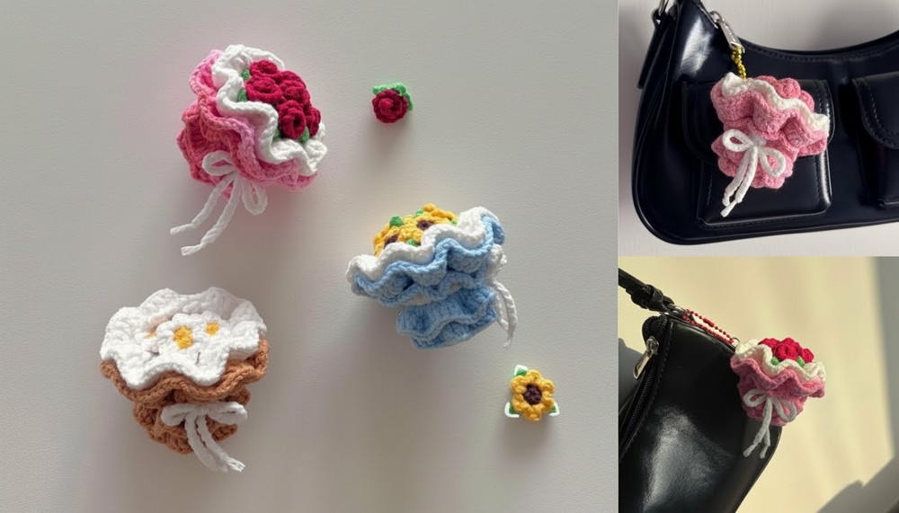 Crochet Mini Flower Bouquet Keychain Pattern with Quick Steps