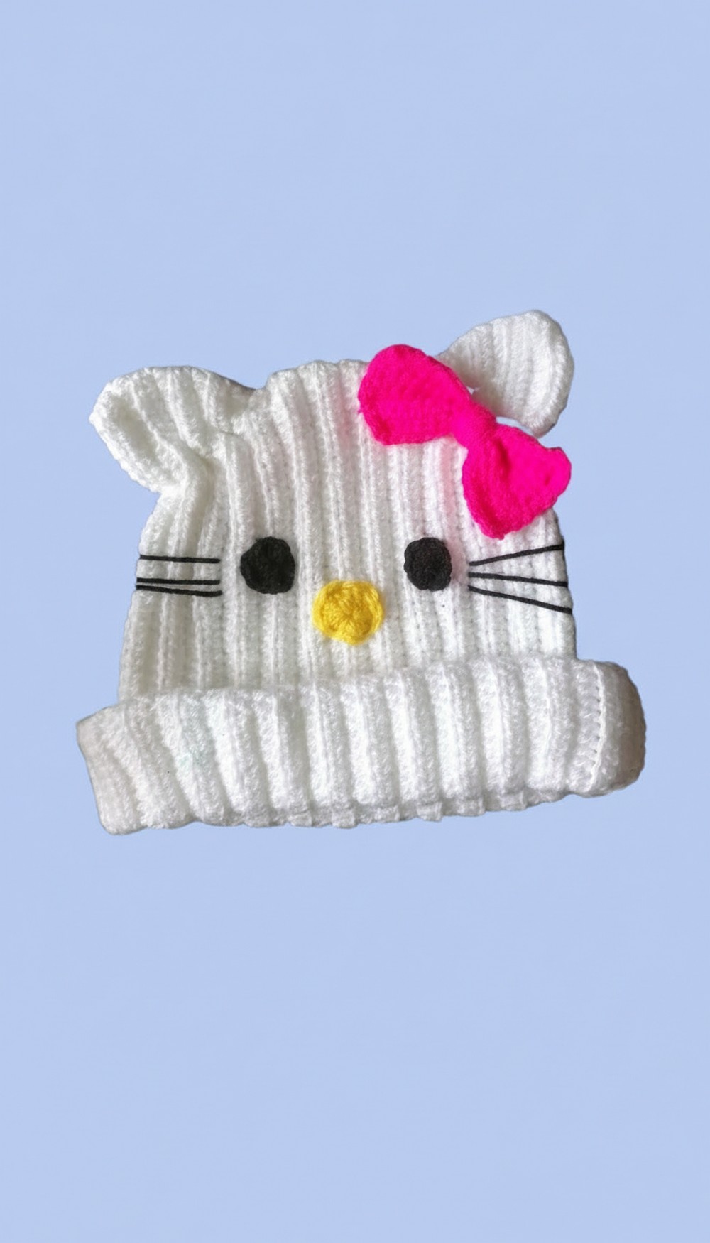 Stitch a charming Crochet Hello Kitty Beanie featuring playful ears and the iconic bow, perfect for expressing creativity and cozy style in every detail.