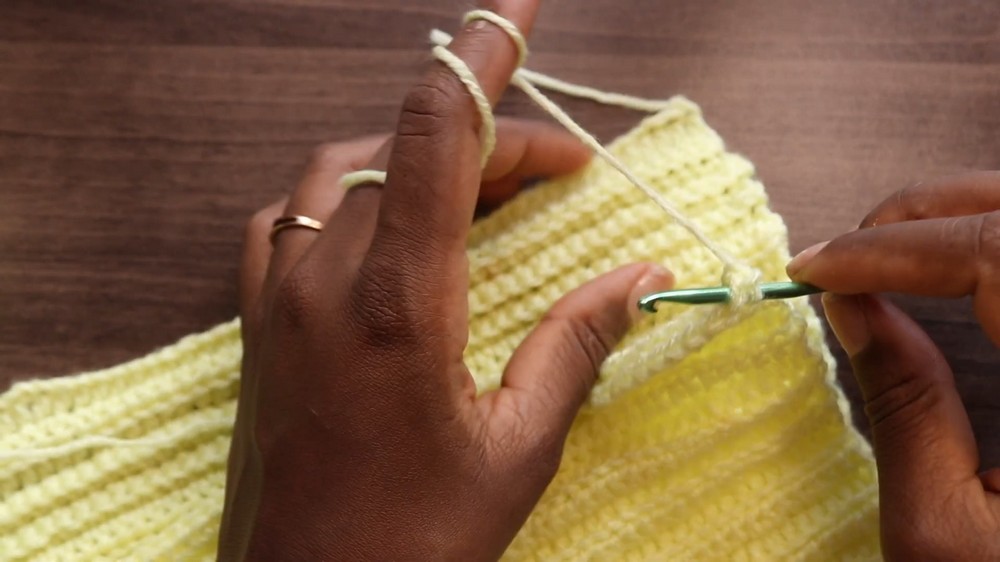 - Half double crochet (hdc) in the 2nd chain from the hook.