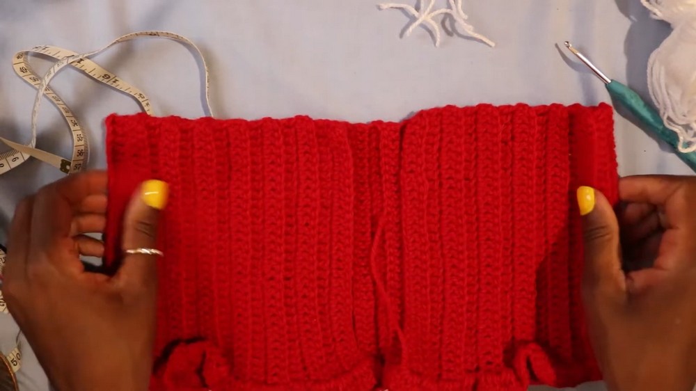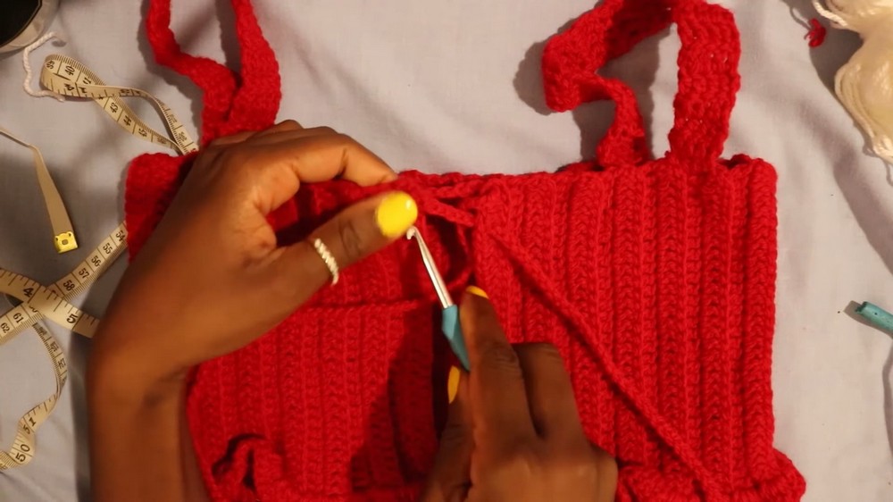 • Repeat rows until the top reaches the desired coverage from the chest to the waist. For reference, 16 cm (or 6–7 inches) suits short crop tops.