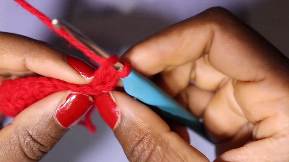 • Optionally, work sc all the way back along the chain for thicker straps.