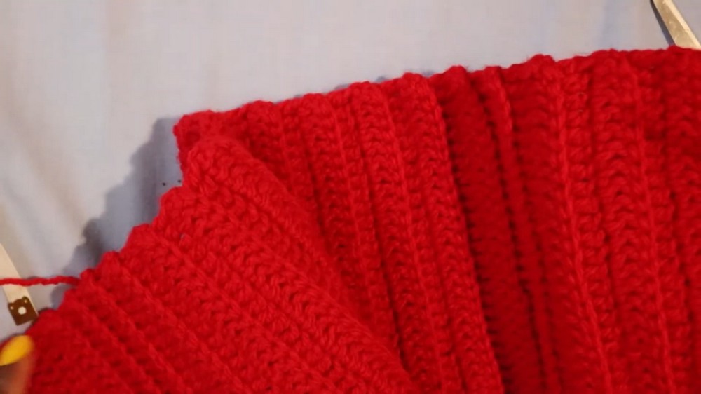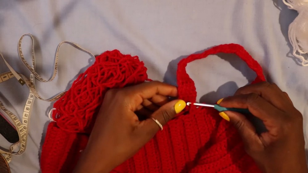1. Neatly single crochet along the top edge to create a smooth finish.