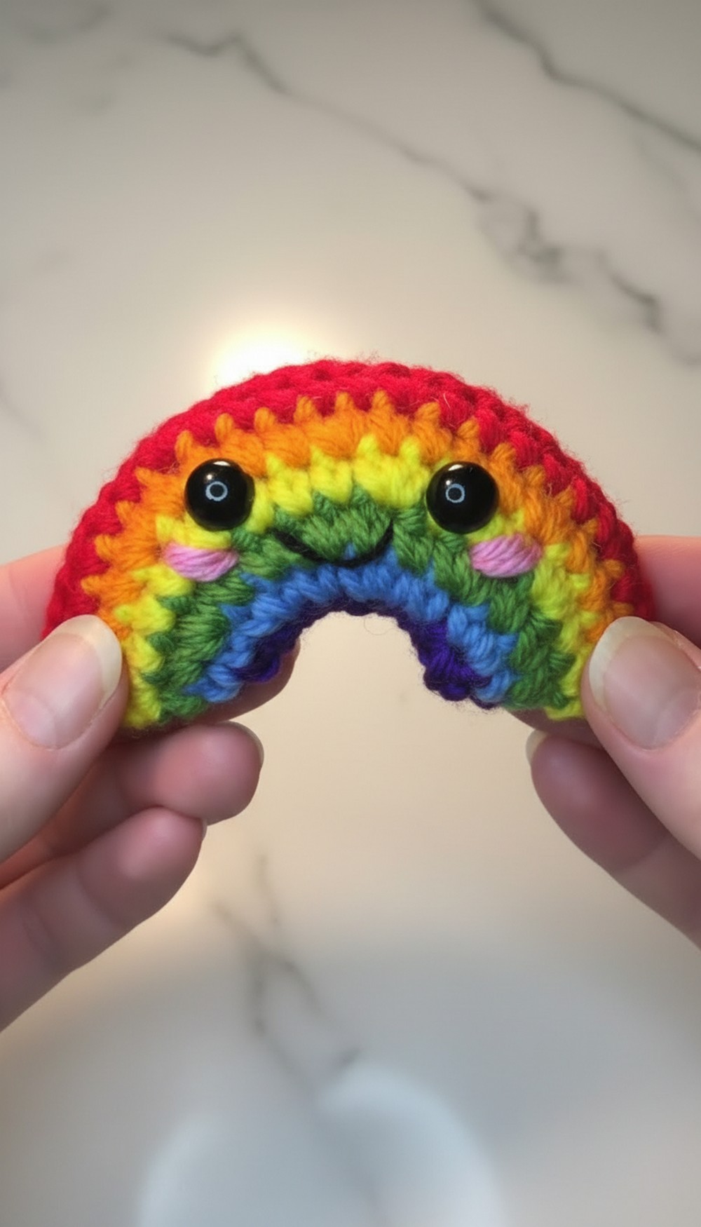 Congratulations on completing your cute little rainbow! This versatile design can be used as a standalone decoration, hung as an ornament, or even as part of a larger crochet project like a baby mobile or wall décor. Switch up your colors, yarn weights, or add extra details to make it uniquely yours.