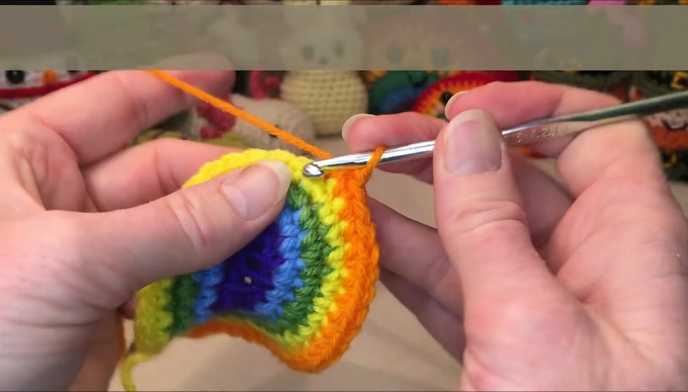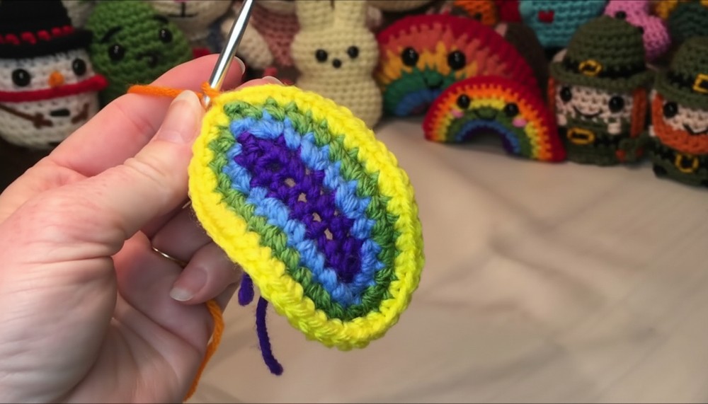 - If you want a slightly larger rainbow, work [5 sc, 1 inc] around. (56 sts)