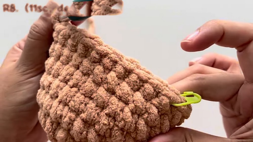 - Fold the last stitches. Skip the final stitch and crochet across: first st, second-to-last st.