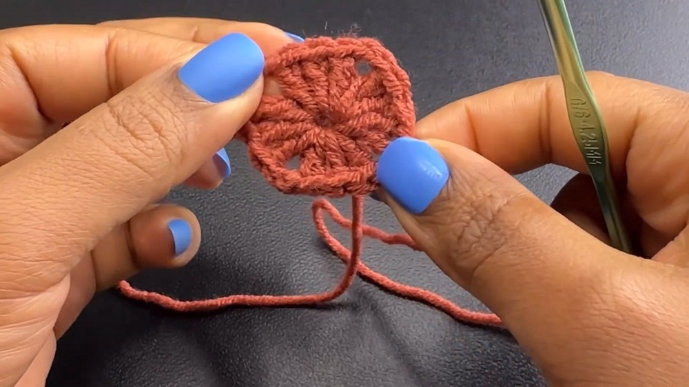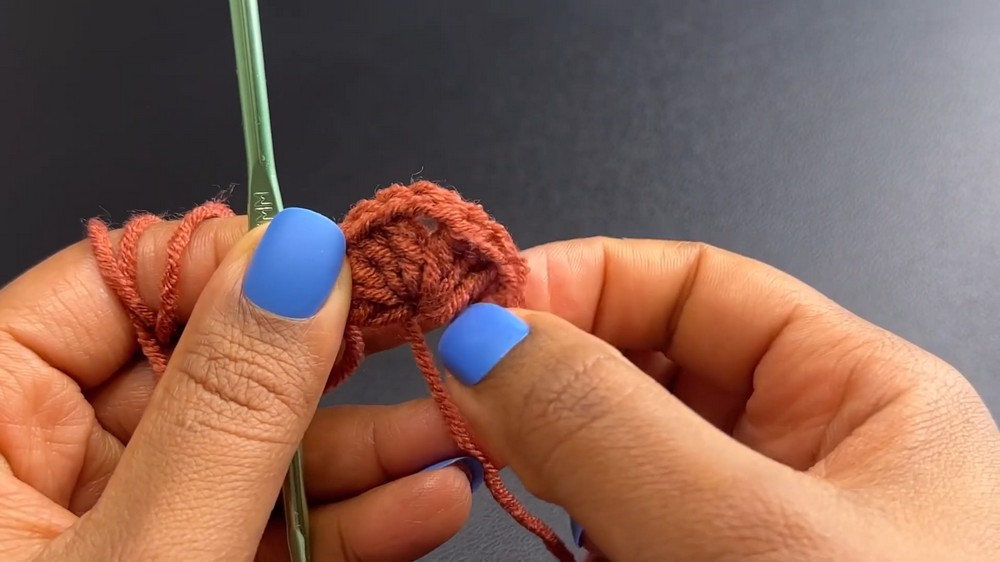 - Insert hook, pull up a loop, and chain 4 (counts as 1 dc + ch 1).